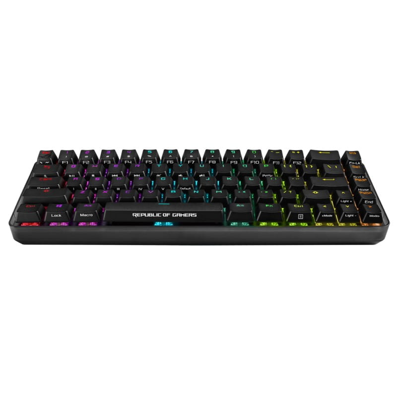 The ROG Falchion NX by ASUS is a 60% or Less sized keyboard with 68 keys, which uses ROG NX (Blue, Red, Brown) switches. The keyboard has media keys which are accessible via function keys. The ROG Falchion NX keyboard uses a wired USB, 2.4 GHz RF connection, with a Type-C to Type A cable. It is supported by Armoury Crate, Aura Sync software. And has per-key RGB lighting backlighting.