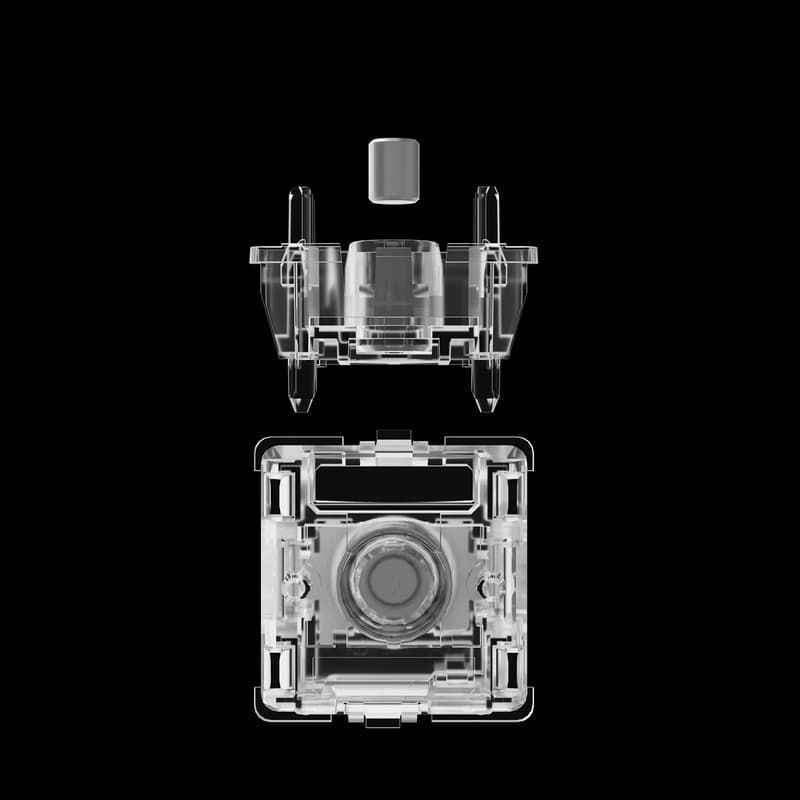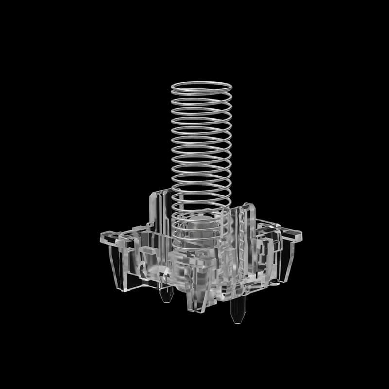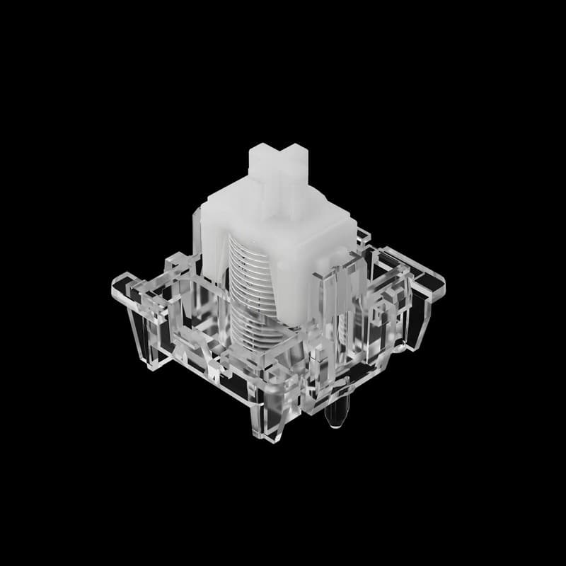 Fully transparent housing with white stem, achieving crystal clear transparency. Seamlessly synchronized with RGB illumination. Delivering immersive fluid-light visuals.