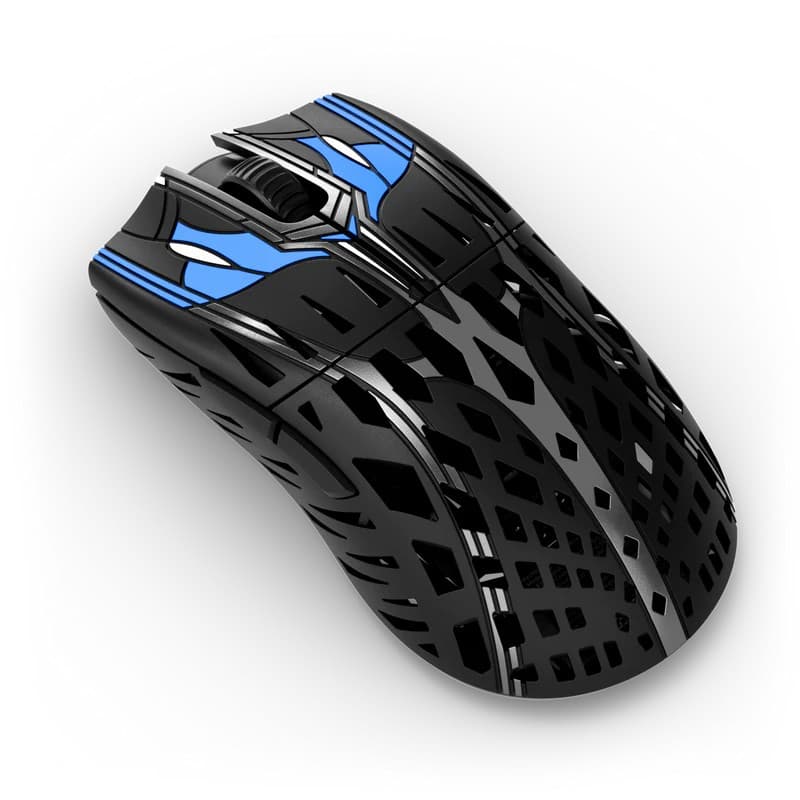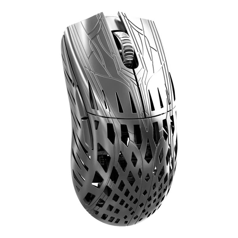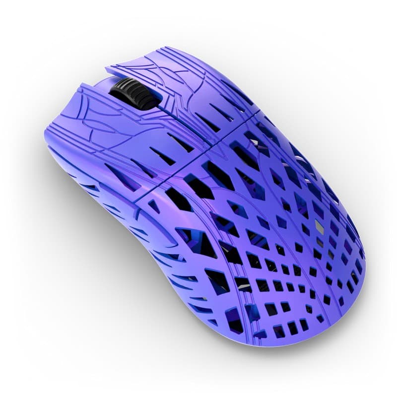 The Pwnage Trinity CF is a premium wireless gaming mouse featuring advanced carbon fiber construction for exceptional durability and style. Powered by a custom PixArt 3950 sensor with up to 36,000 DPI and 750 IPS tracking speed, it delivers professional-grade precision with variable polling rates up to 8000Hz in both wired and wireless modes. Weighing 37-39g with a symmetrical right-handed design, this lightweight mouse includes 5 programmable buttons with optical Omron switches rated for 70 million clicks and premium PTFE or glass skate options for ultra-smooth gliding. The matte-finished carbon fiber shell offers impressive battery life of up to 160 hours for office use or 100 hours gaming, with rapid 2-hour full recharging via USB-C connection. Available in custom color configurations without RGB lighting, this mouse focuses on pure performance and premium materials for discerning competitive gamers.