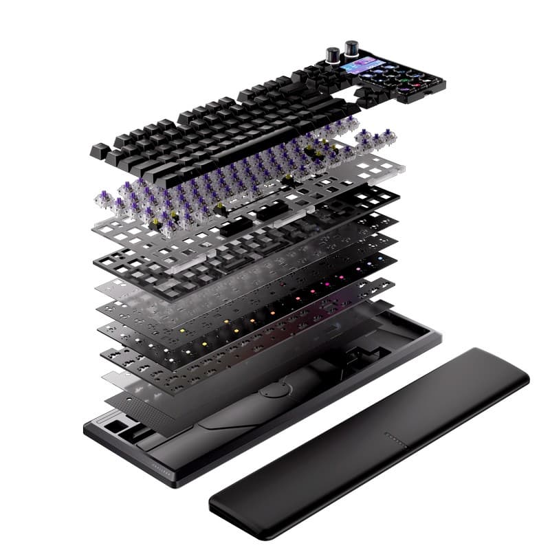 The Corsair Galleon 100 SD is a full-size gaming keyboard designed for creators and gamers who want premium performance with integrated streaming controls. Packing 84 keys with dedicated media keys and a volume roller, you get quick access to all your essential controls without fumbling through function layers. The Corsair MLX Purple switches deliver a satisfying tactile bump with smooth actuation—perfect for both intense gaming sessions and long typing marathons. What sets the Galleon 100 SD apart is the deep integration with Elgato Stream Deck software alongside Corsair's Web Hub, making this an absolute powerhouse for content creators who need easy access to streaming commands, scene switches, and macros right from their keyboard. The 8000Hz polling rate ensures zero input lag, while full N-key rollover with 100% anti-ghosting means every keypress registers perfectly even during the most chaotic button mashing. The detachable palm rest adds comfort for long sessions, and per-key RGB lighting lets you customize your aesthetic. At 1.392kg, this board has serious heft that keeps it planted on your desk. With 8MB of memory and cross-platform support for PC and Mac, the Galleon 100 SD is built for power users who demand the best.